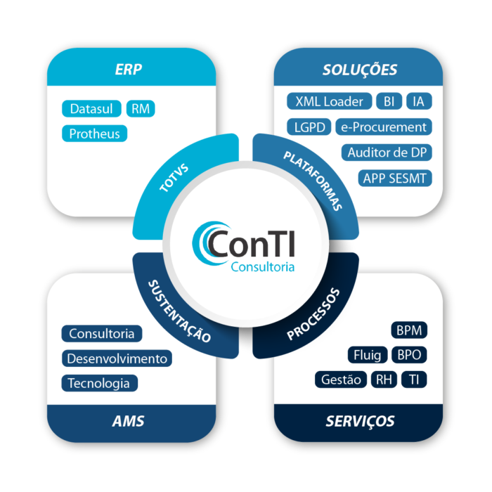 Com a nossa expertise e inovação, apoiamos empresas no uso dos ERPs TOTVS e em serviços de consultoria em gestão, processos, tecnologia e sustentação de ambientes. Focamos em melhorias contínuas, adequações a legislação, redução de custos e aumento da produtividade.